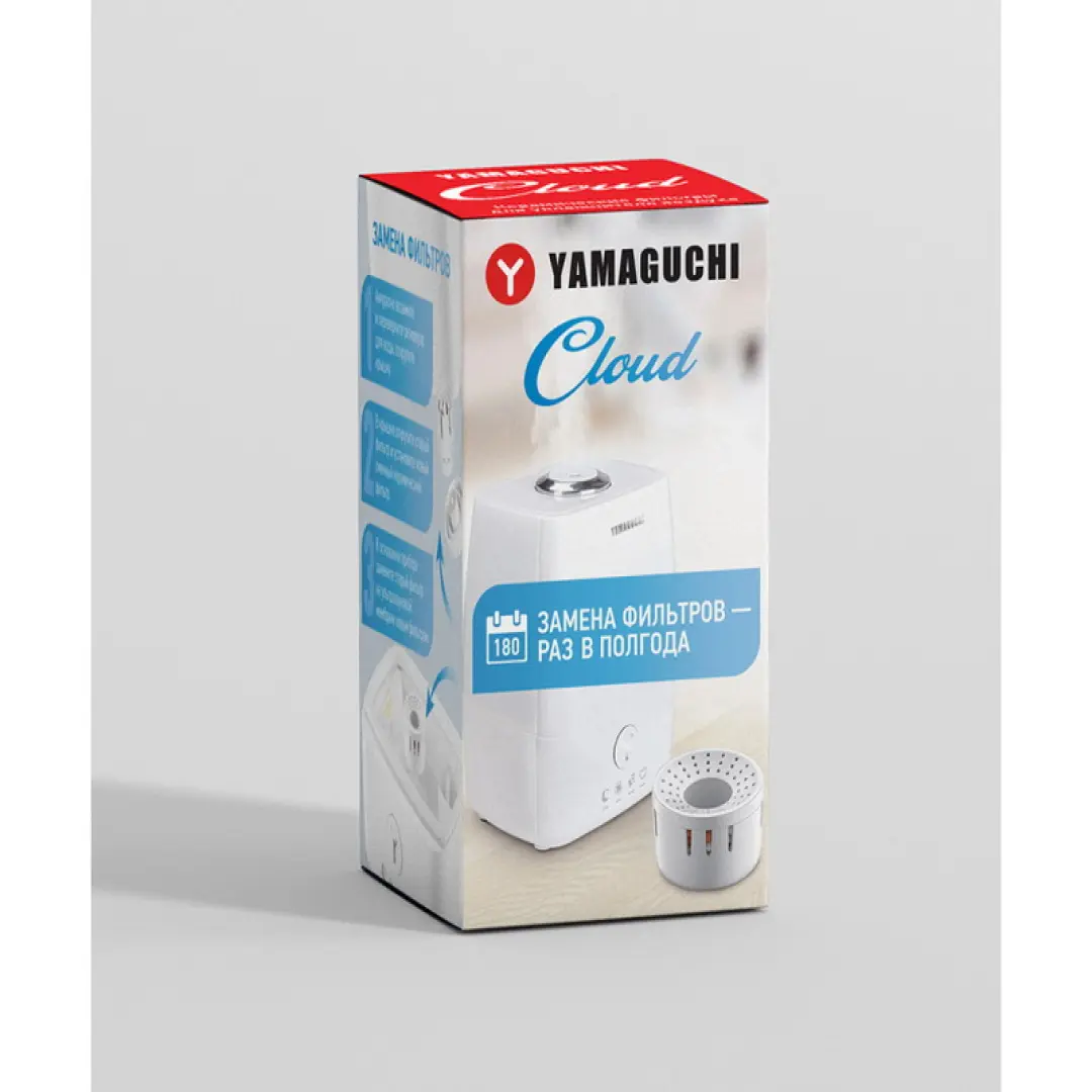 Yamaguchi Cloud – это увлажнитель воздуха с ультразвуковой технологией. Прибор используется в домашних условиях для создания микроклимата, который способствует лучшему самочувствию в дневное и ночное время суток. Высокая производительность испарителя обеспечивается ультразвуковой мембраной с минимальным потреблением электроэнергии как для бытового прибора.